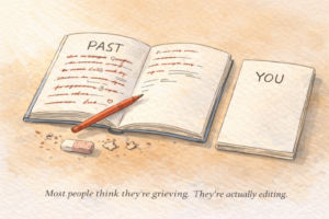There's a version of the past that lives in you like a book you've already finished but keep rereading, and the honest reason you keep returning has very little to do with the ending — which you already know — and everything to do with the fact that being inside the story feels safer than standing outside it with nothing to hold. Grief moves through you and releases. What most people are doing instead is maintenance — the daily, largely unconscious act of keeping a version of events alive, tending to it, making sure the details stay sharp …