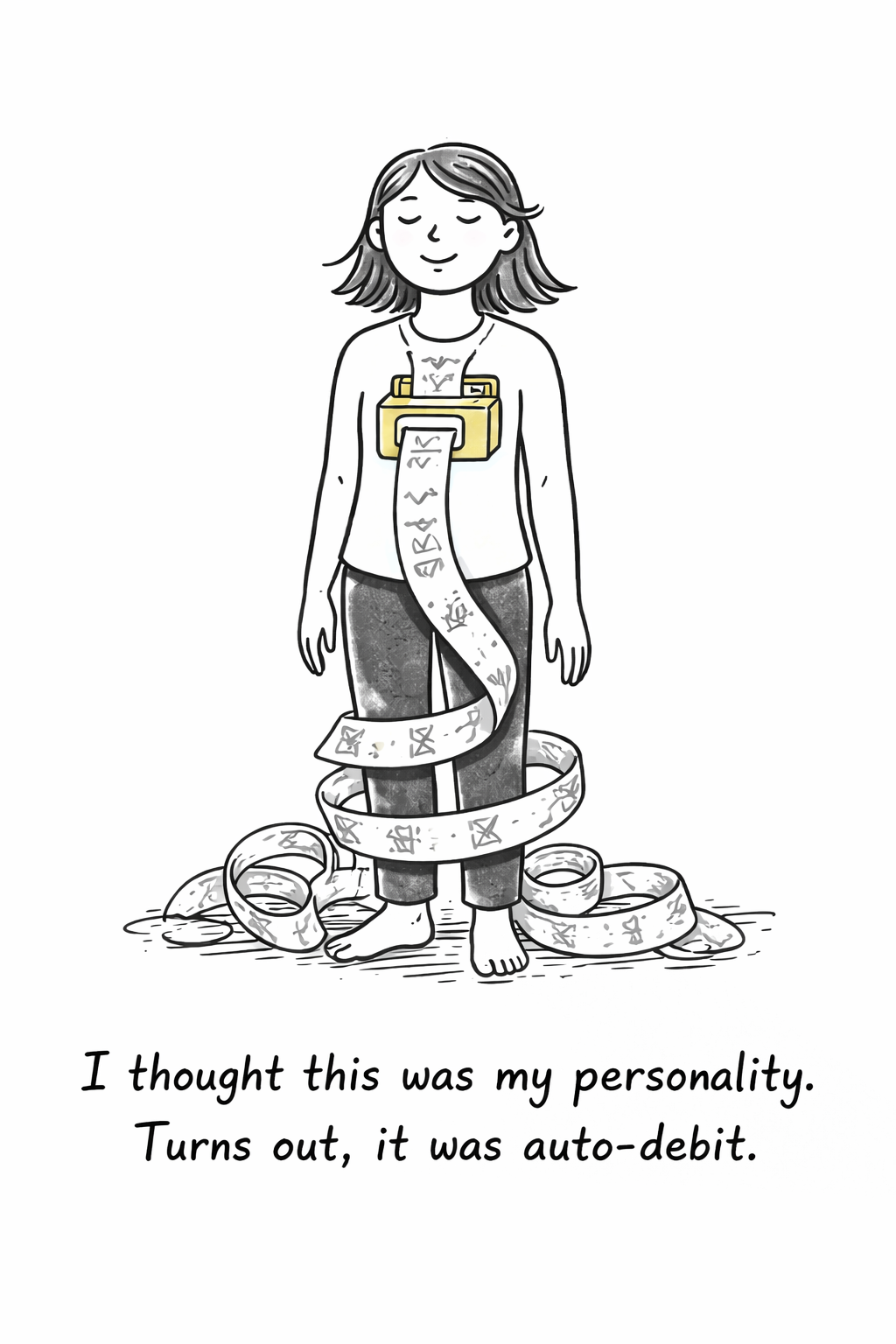 Once the balance gets big enough, it starts pulling everything else into the payment plan. Your relationships become servicing arrangements — you pick partners whose chaos feels familiar because your system is scanning for what it grew up with, the same way your Spotify algorithm keeps recommending songs that sound like what you already listen to. Your career becomes a distraction strategy — staying so busy you can’t hear the hum underneath. Your daily habits — the midnight scrolling, the overcommitting, the way I reorganize my entire apartment at 11 PM when I’m overwhelmed because rearranging furniture is easier than sitting with what’s underneath — those are all interest payments.