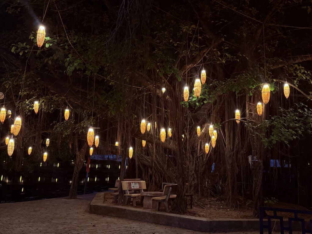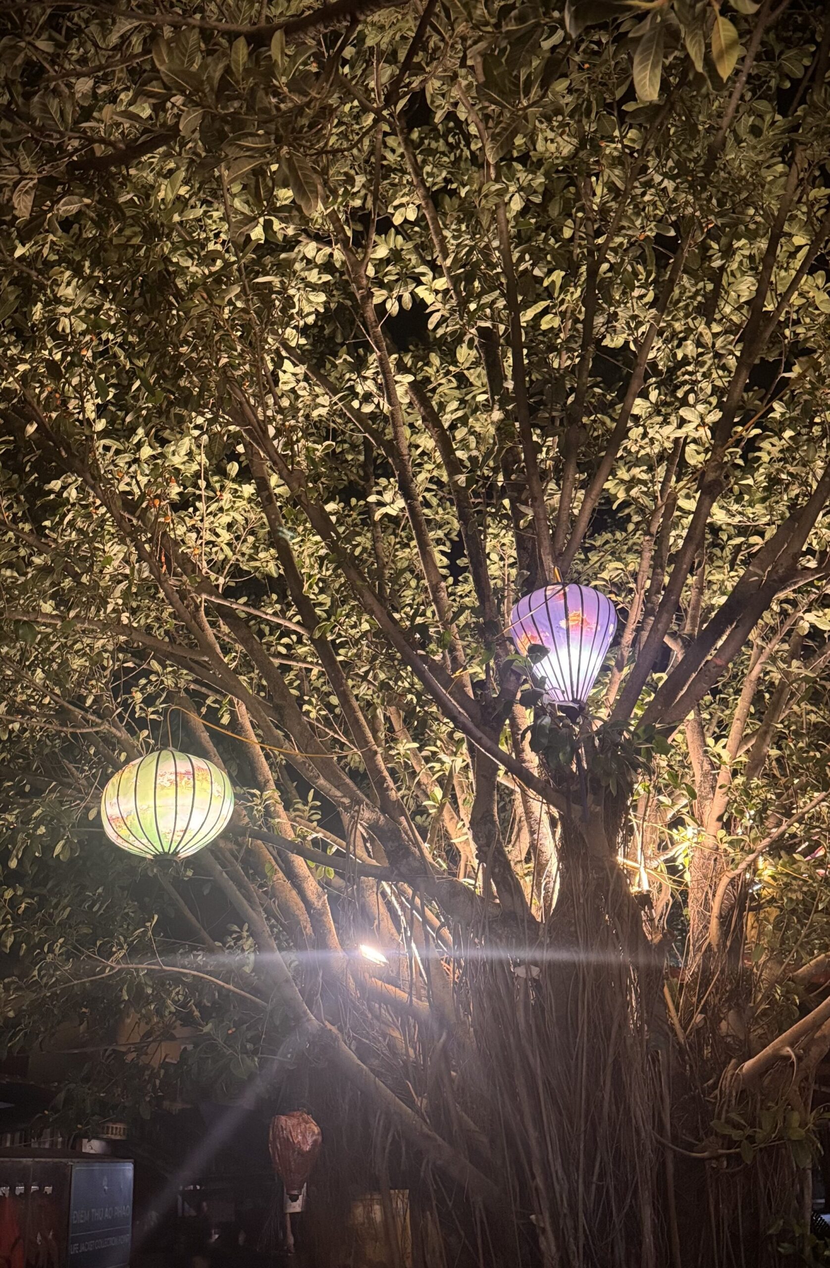 Slowing down heightened our senses. We found ourselves genuinely fascinated by tiny details, like the yellow string lights strung in trees.