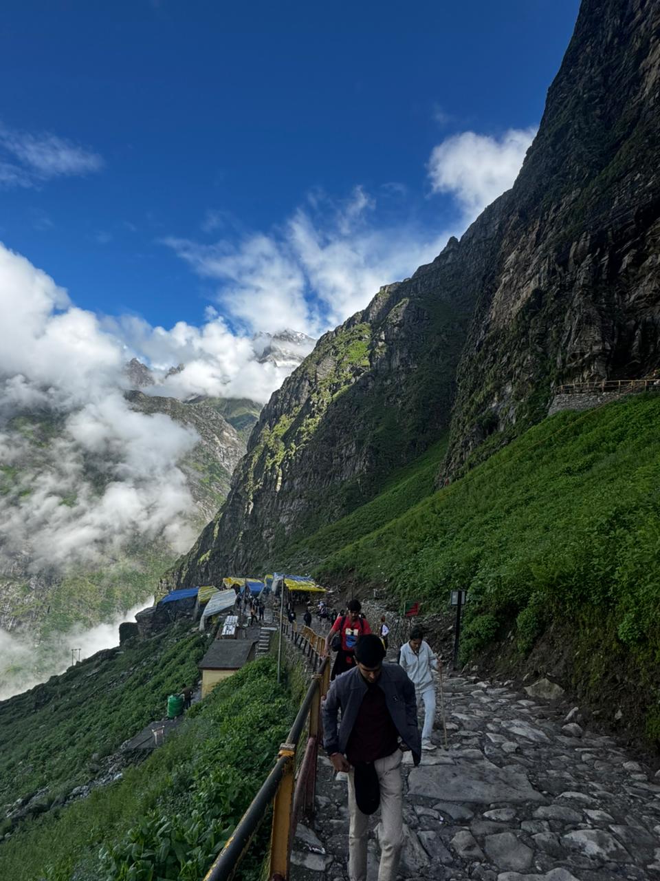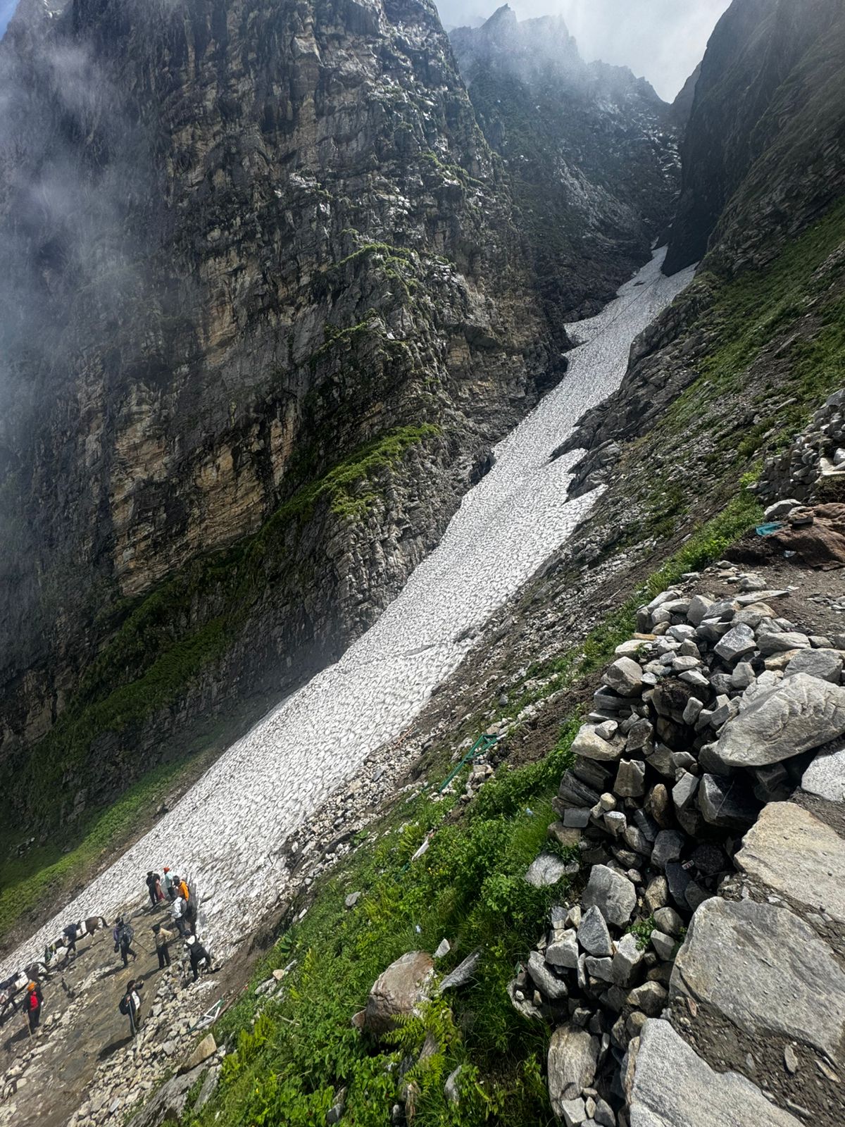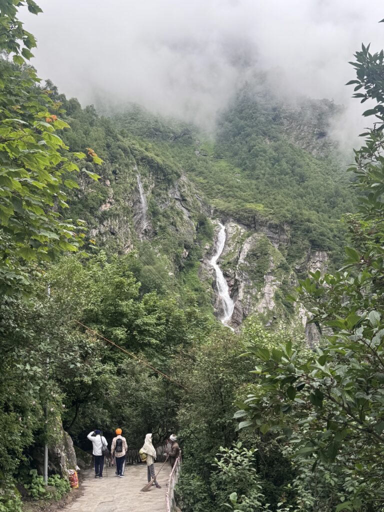 We carried our own backpacks—first time for me. Usually I offload them to mules. Hari carried most of the weight, but by the end, both of us were wiped. The route was undeniably beautiful—rivers alongside us, waterfalls tumbling down cliffs, friendly Sikh pilgrims handing out prasad and energy. But that last 1.5 km was brutal. The only thought in my mind was: just end this.