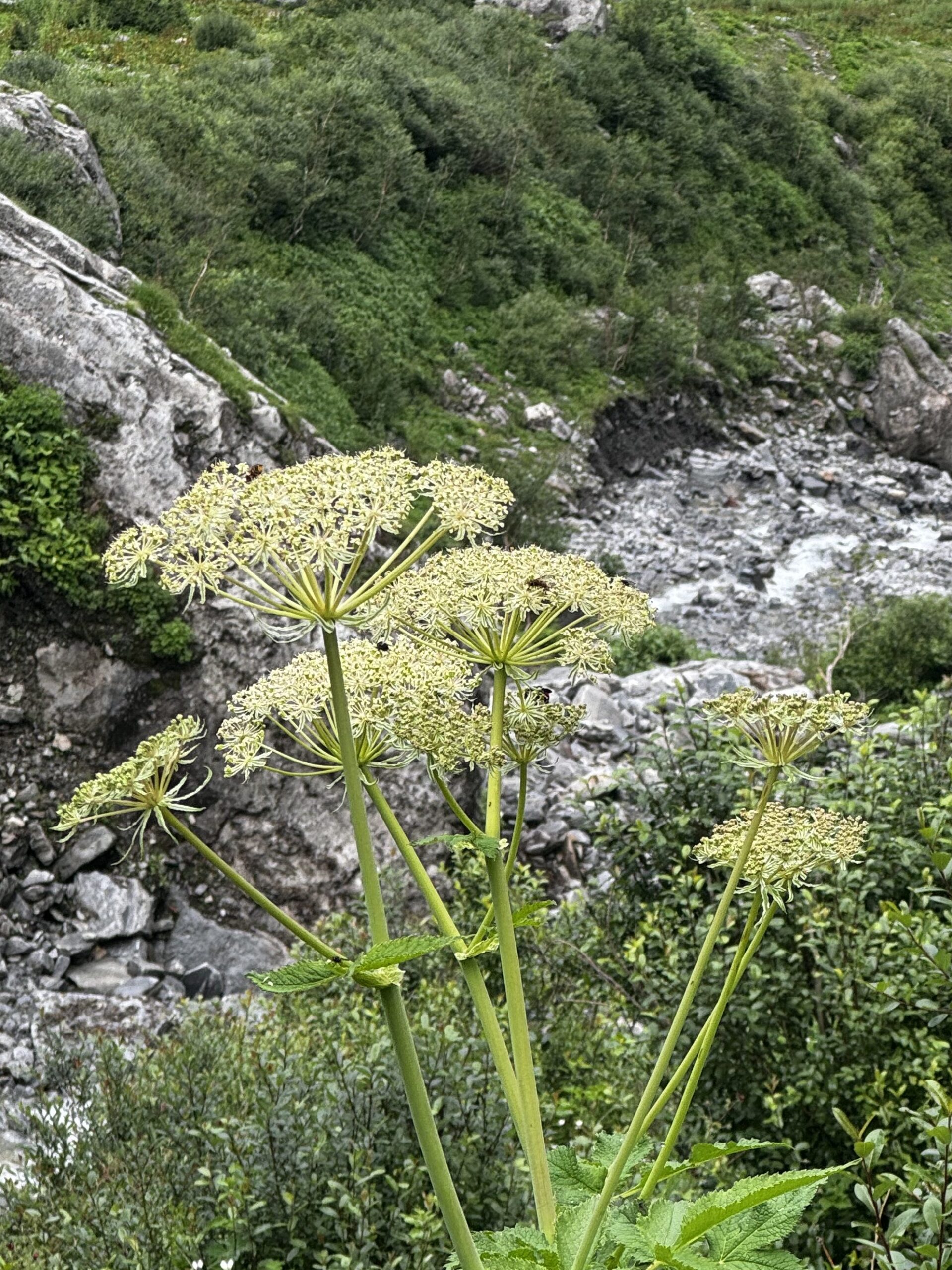 And what a climb it was. Steep, no doubt—but it had my heart. Big snow patches still clinging to the mountainsides. Peaks so close it felt like we could touch them. Mist swirling around us, rising and falling like waves. And then the wildflowers—oh, the wildflowers. The same ones we had seen in the Valley the day before, now growing in full glory along the trail. It felt like a little reminder that we were still in the valley, just higher, colder, and a little more out of breath.