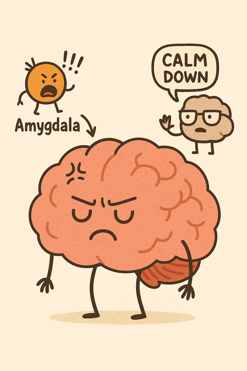 These two questions open a tiny doorway. They put the prefrontal cortex in conversation with the amygdala instead of letting it silence the alarms. The emotion becomes information instead of a threat. The impulse becomes visible instead of automatic. Suddenly I can choose how to act instead of reacting from old code.